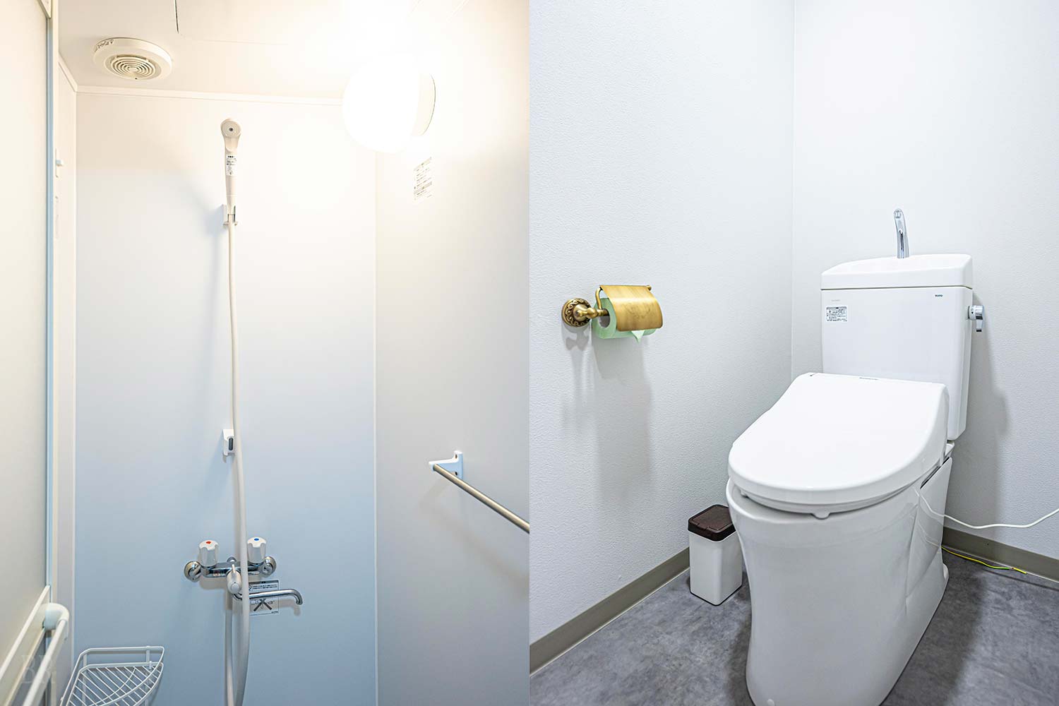 除了直徑5公尺的住宿用鐘型帳篷外,每一棟都設有專屬的水帳篷(衛浴・洗手台),